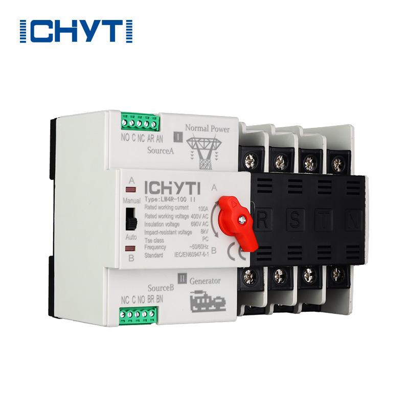 Ο αυτόματος διακόπτης μεταφοράς 100 amp ICHYTI Factory China είναι ιδανικός για συστήματα τροφοδοσίας έκτακτης ανάγκης με ονομαστική τάση 400V και 100A AC στα 50 ή 60Hz. Ο συμπαγής σχεδιασμός, η αξιόπιστη λειτουργικότητα μεταφοράς, η εύκολη εγκατάσταση και συντήρηση και η μεγάλη διάρκεια ζωής το καθιστούν δημοφιλή επιλογή. Ο αυτόματος διακόπτης μεταφοράς 100 amp είναι κατάλληλος για διάφορες εφαρμογές όπου η συνεχής παροχή ρεύματος είναι απαραίτητη και μπορεί να λειτουργήσει τόσο ηλεκτρικά όσο και χειροκίνητα. Ο αυτόματος διακόπτης μεταφοράς 100 amp σειράς LW2R είναι συμβατός με τις απαιτήσεις του IEC60947-6-1 για συσκευές διανομής χαμηλής τάσης και γρανάζια ελέγχου.