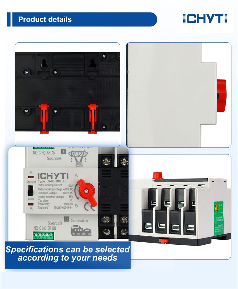 Εργοστάσιο Κίνας ICHYTI Χονδρική Αγορά Έκπτωση μονοφασικός διακόπτης αυτόματης εναλλαγής έχει τρεις λειτουργίες μεταγωγής στο σύστημα τροφοδοσίας ενός τριφασικού τετρασύρματος ηλεκτρικού δικτύου, συμπεριλαμβανομένης της αυτόματης μεταγωγής του τροφοδοτικού σε κατάσταση αναμονής, του εφεδρικού τροφοδοτικού και του ηλεκτρικού δικτύου και της γεννήτριας. Μπορεί να ανιχνεύσει την ενεργή τιμή τριφασικής τάσης και την ενεργή τιμή τάσης φάσης και τη φάση δύο πηγών ισχύος σε πραγματικό χρόνο και να μεταβεί αυτόματα από μη κανονικές πηγές ισχύος σε κανονικές πηγές ισχύος σε περίπτωση υπέρτασης, χαμηλής τάσης ή απώλειας φάσης σε οποιαδήποτε φάση.